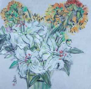 | Qian Juan(Silk Lady), a visiting Chinese artist in Japan, a doctor of literature and art, a National First-Class Artist, a member of the Chinese Artists Association, a visiting professor of The Central Academy of Fine Arts (CAFA), and a visiting professor of The Royal Academy of Arts of Victoria, Canada. Under the tutelage of Mr. Aisin Gioro Jianguo and the Japanese painter Ms. Chie Fukuda, after years of concentrated study and research, she has integrated Chinese painting, Japanese painting and also Western painting. She explored her unique painting style. |